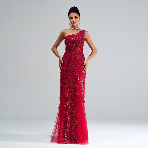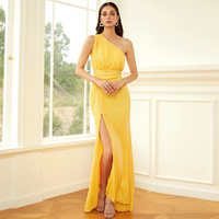 На одно плечо с разрезом желтые блестки длинное вечернее платье для женщин